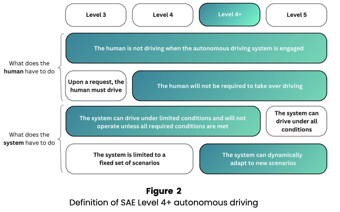 - It won't reach Level 5, but a Level 4+ that can drive almost anywhere