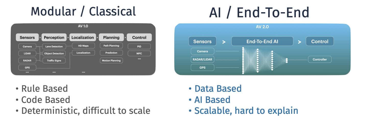 ... End-To-End approaches are much more complex to evaluate, because they only output the final driving decision. I have an entire article covering the differences here.