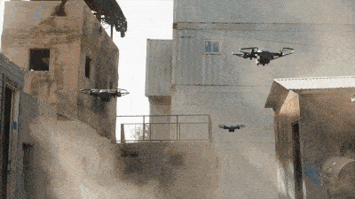 - In the middle, you can see the tactical quadcopters we discussed. Notice how they use vSLAM at the end of the shot.