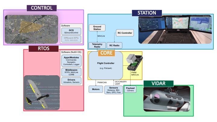 And in fact, when you start looking into autonomous drone architecture, they absolutely don't look like self-driving car architectures! For example with Shield AI, they have a Control, a Station, RTOS, a ViDAR, but also a Flight Controller powered with frameworks like PX4 and Maven. This is an entire set of libraries to learn.